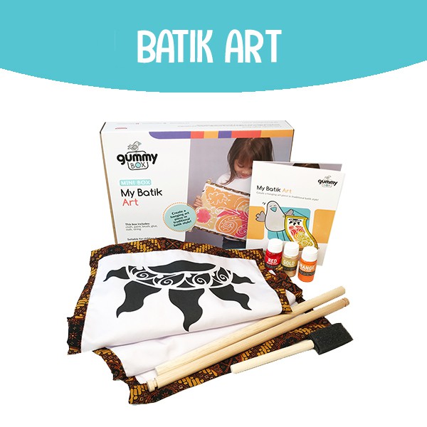 Asah jiwa seni si kecil dengan membuat karya seni gantung dalam gaya tradisional batik! Kotak ini membawa si kecil melalui versi proses pembuatan batik yang mudah dipelajari anak-anak, seni warisan cantik yang berasal dari Jawa, Indonesia.